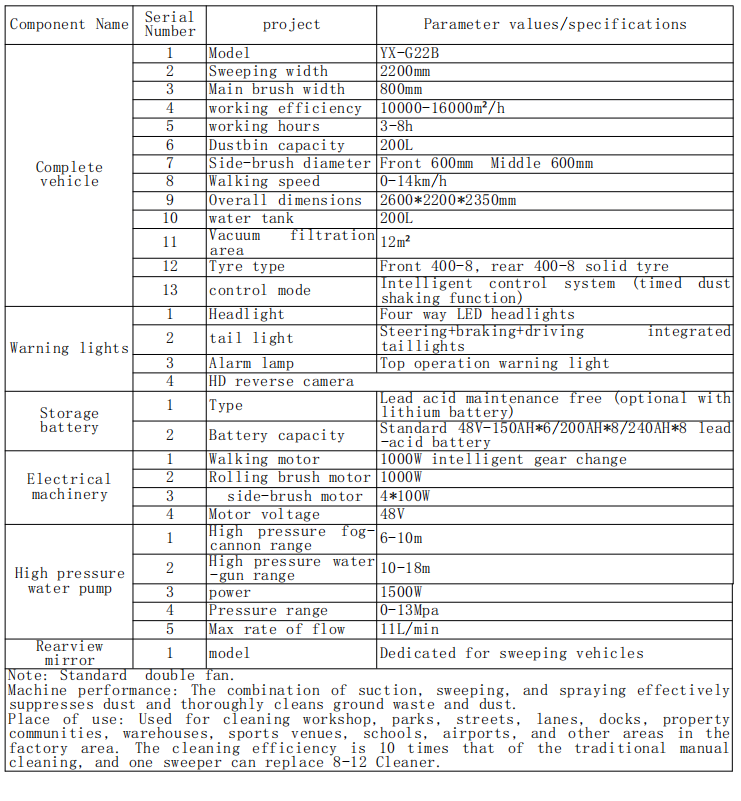 Käyttöpaikka: Käytetään työpajan, puistojen, kadujen, kaistojen, telakoiden, kiinteistöjen, varastojen, urheilupaikkojen, koulujen, lentokenttien ja muiden alojen puhdistamiseen. Puhdistustehokkuus on 10-kertainen perinteisen manuaalisen kärjessä, ja yksi lakaisukone voi korvata 8-12 puhdistusaineen.