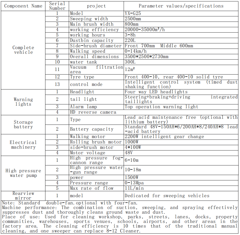 Käyttöpaikka: Käytetään työpajan, puistojen, kadujen, kaistojen, telakoiden, kiinteistöjen, varastojen, urheilupaikkojen, koulujen, lentokenttien ja muiden alojen puhdistamiseen. Puhdistustehokkuus on 10-kertainen perinteisen manuaalisen kärjessä, ja yksi lakaisukone voi korvata 8-12 puhdistusaineen.