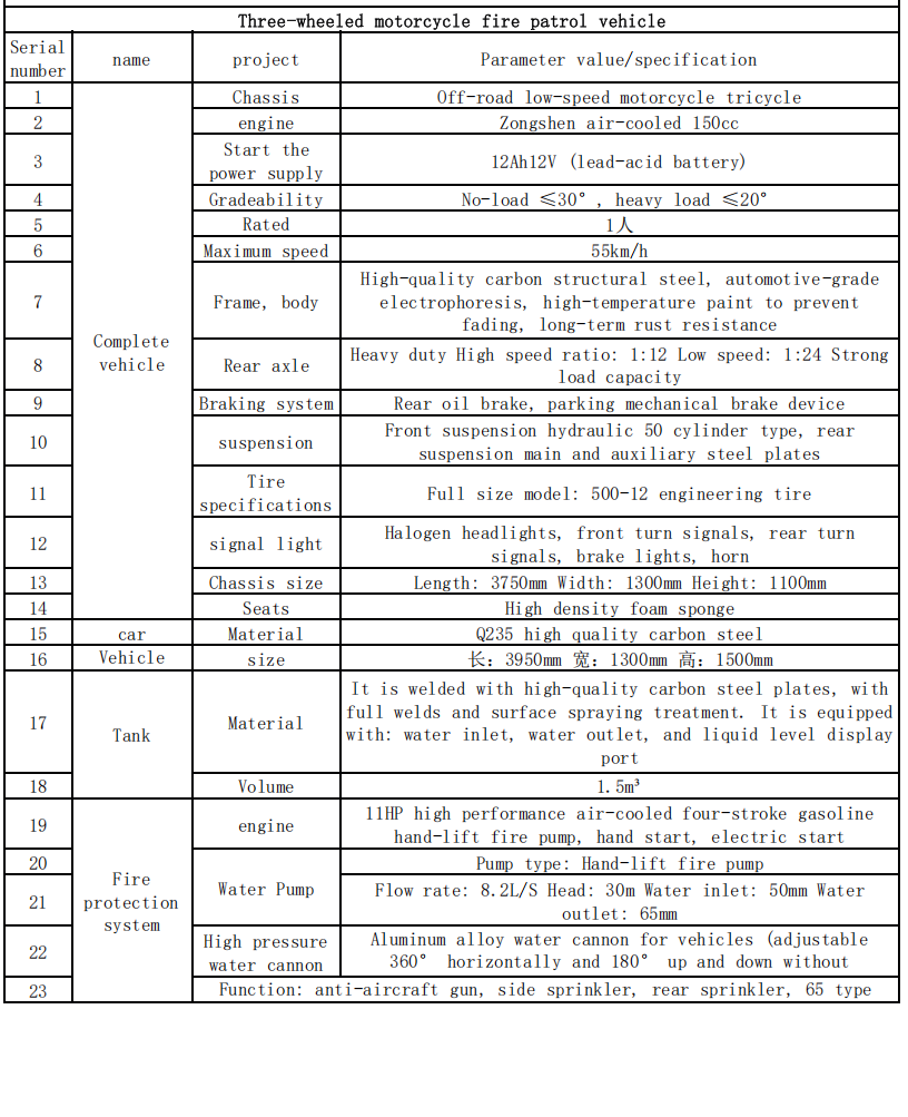 Maaseudun teiden alhaisen luokan ja pitkän matkan päässä paloasemista voidaan käyttää kolmipyöräisiä palo-moottoripyöriä kaupunkikunnan ammattilaisten palokunnan päälaitteina. Ne voivat kuljettaa enemmän tarvikkeita kuin kaksipyöräiset ajoneuvot ja ne ovat mukautuvampia monimutkaisiin tieolosuhteisiin kuin nelipyöräiset paloautot, jotka ymmärtävät "lähistöllä olevan poliisin lähettämisen ja nopean hävittämisen".